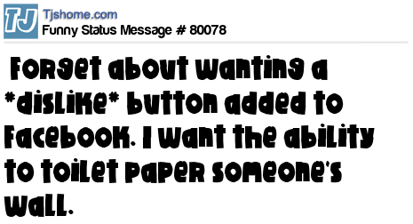 X is Forget about wanting a *dislike* button added to Facebook. I want the ability to toilet paper someone's wall.