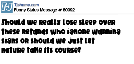 X says Should we really lose sleep over these retards who ignore warning signs or should we just let nature take its course?