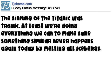 - # 73912 Dear icebergs, Sorry to hear about the global warming. Enjoy the Karma... Sincerely, the Titanic