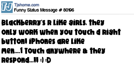 - # 48477 Blackberries are like girls, they only work when you rub one little button. iPhones are like men. One touch, anywhere and they respond.