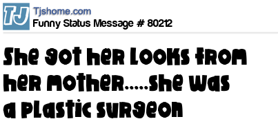 - # 98523 You know you're ugly when the plastic surgeon wants to add a tail