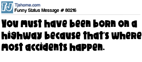 - # 21995 You must been born on the freeway .cuz that's where most accidents happen.