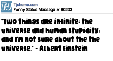X "Two things are infinite: the universe and human stupidity; and I'm not sure about the the universe." - Albert Einstein