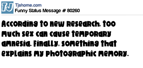 - # 80262 According to new research, too much sex can cause memory loss. Finally, something that explains my ultra detailed photographic memory.