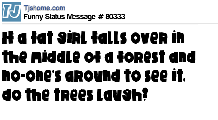 - # 27256 if a fat girl falls in the forest and nobody is there to see it ...... do the trees laugh?