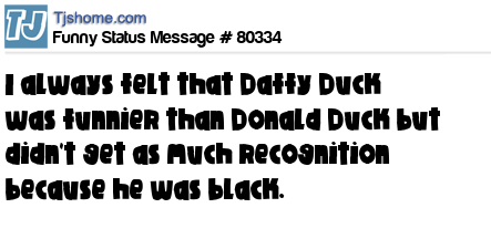 X I always felt that Daffy Duck was funnier than Donald Duck but didn't get as much recognition because he was black.