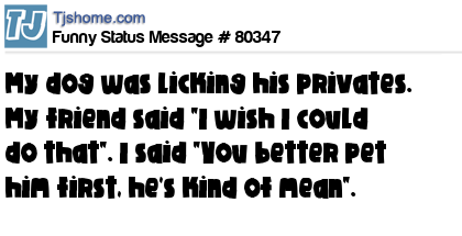 - # 80250 My dog was licking his nuts. My friend said "I wish I could do that". I said "You better pet him first, he's kind of mean".