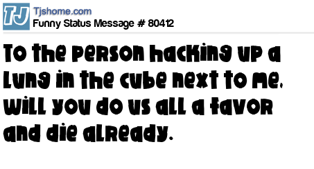 X is To the person hacking up a lung in the cube next to me, will you do us all a favor and die already.