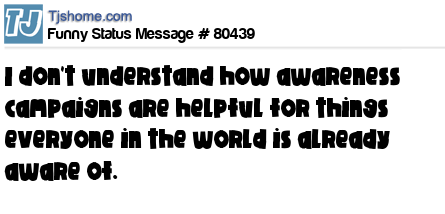 X I don't understand how awareness campaigns are helpful for things everyone in the world is already aware of.