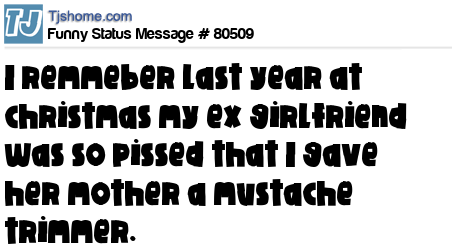 X is I remmeber last year at christmas my ex girlfriend was so pissed that I gave her mother a mustache trimmer.
