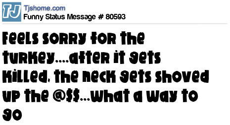 X feels sorry for the turkey....after it gets killed, the neck gets shoved up the @$$...what a way to go