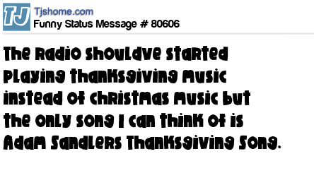 X The radio shouldve started playing thanksgiving music instead of christmas music but the only song I can think of is Adam Sandlers Thanksgiving Song.