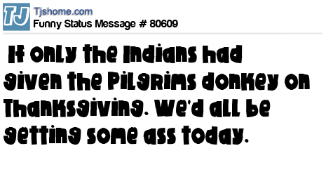- # 37700 If the Indians had given the pilgrims a donkey instead of a turkey, we'd all be getting a piece of ass on Thanksgiving.