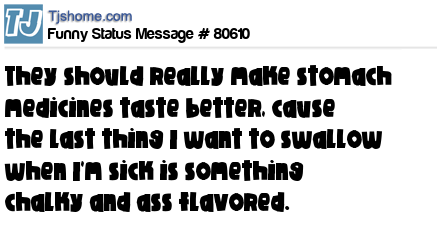 X They should really make stomach medicines taste better, cause the last thing I want to swallow when I'm sick is something chalky and ass flavored.