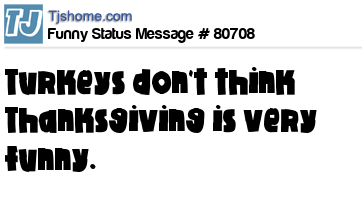 - # 140539 Are you all getting ready for Thanksgiving? PETA says today's turkeys are so fat, they can't stand up, they're prone to heart attacks, and they have trouble mating. No, I'm sorry, that's what the turkeys are saying about us. I had it backward.