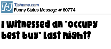 - # 79679 I'm jealous of the occupy movement, I wish I could join in. But I have to occupy my job so my kids can occupy my house.