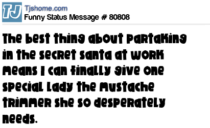 X says The best thing about partaking in the secret santa at work means I can finally give one special lady the mustache trimmer she so desperately needs.
