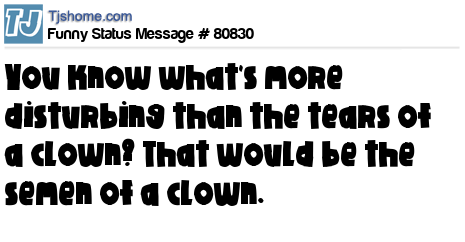 X is You know what's more disturbing than the tears of a clown? That would be the semen of a clown.