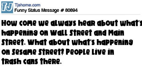X How come we always hear about what's happening on Wall Street and Main Street. What about what's happening on Sesame Street? People live in trash cans there.