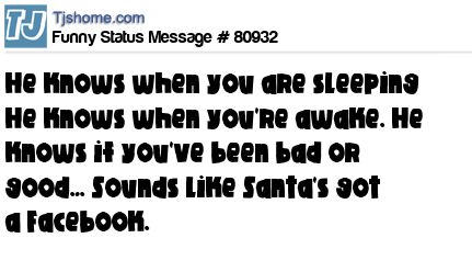 X He knows when you are sleeping He knows when you're awake. He knows if you've been bad or good… Sounds like Santa's got a Facebook.
