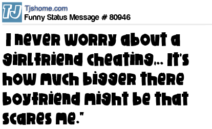 - # 84842 Ladies: If your boyfriend is bathing more than once a week...he may be cheating on you!