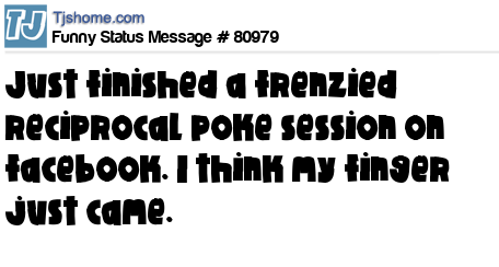 X Just finished a frenzied reciprocal poke session on facebook. I think my finger just came.