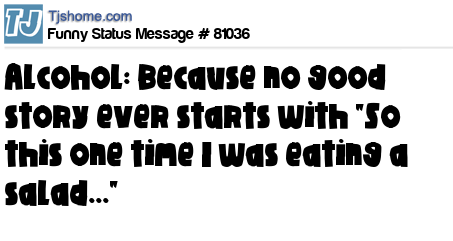- # 110533 Alcohol. Because no good story starts with, “This one time I ate a salad…”