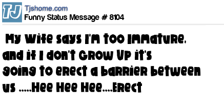 X My Wife says I'm too Immature, and if I don't Grow Up it's going to erect a barrier between us .....Hee Hee Hee....Erect