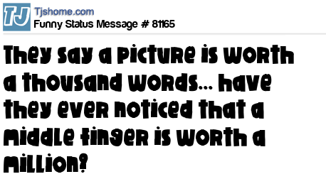 X is They say a picture is worth a thousand words... have they ever noticed that a middle finger is worth a million?