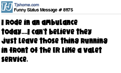X I rode in an ambulance today....I can't believe they just leave those thing running in front of the ER like a valet service.