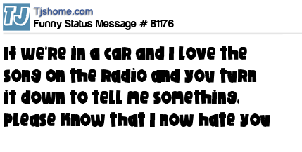 - # 71251 If we are in a car and I love the song that just came on the radio and you turn it down to tell me something, please know that I will cut you.