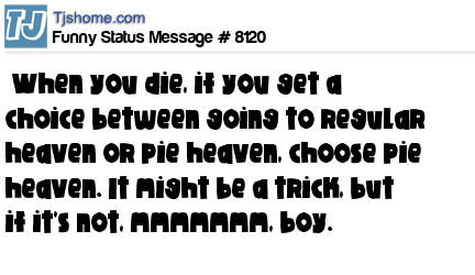 X says When you die, if you get a choice between going to regular heaven or pie heaven, choose pie heaven. It might be a trick, but if it's not, mmmmmmm, boy.