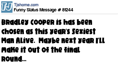 X Bradley Cooper is has been chosen as this year's Sexiest Man Alive. Maybe next year I'll make it out of the final round...