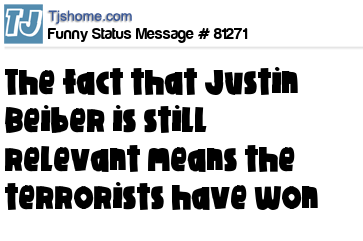 X is the fact that Justin Beiber is still relevant means the terrorists have won
