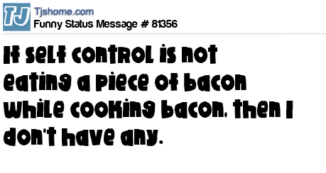 X says If self control is not eating a piece of bacon while cooking bacon, then I don't have any.