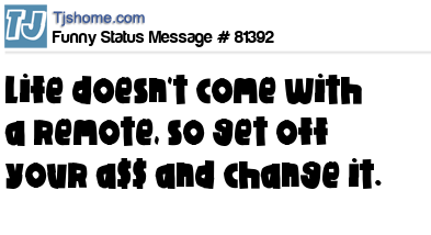 X says Life doesn't come with a remote, so get off your a$$ and change it.