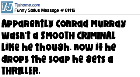 X says apparently Conrad Murray wasn't a SMOOTH CRIMINAL like he though. now if he drops the soap he gets a THRILLER.