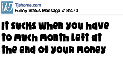 - # 29126 POVERTY: Having too much month left at the end of the money.