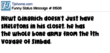 X Newt Gingrich doesn't just have skeletons in his closet, he has the whole bone army from the 7th Voyage of Sinbad.