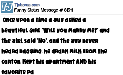 - # 25221 **shortest fairly tale**-->once upon a time, a guy asked a girl "will you marry me?" The girl said "NO!" The guy lived happily ever after..