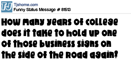 X How many years of college does it take to hold up one of those business signs on the side of the road again?