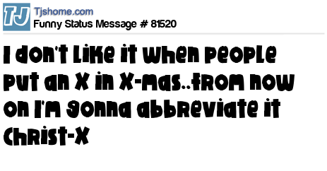 X is I don't like it when people put an X in X-mas..from now on I'm gonna abbreviate it Christ-X