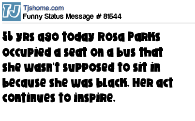 X 56 yrs ago today Rosa Parks occupied a seat on a bus that she wasn't supposed to sit in because she was black. Her act continues to inspire.