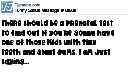 X is There should be a prenatal test to find out if you're gonna have one of those kids with tiny teeth and giant gums. I am just saying...