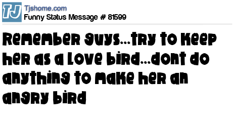 X says remember guys...try to keep her as a love bird...dont do anything to make her an angry bird