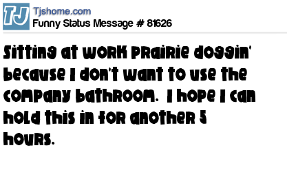X is sitting at work prairie doggin' because I don't want to use the company bathroom. I hope I can hold this in for another 5 hours.