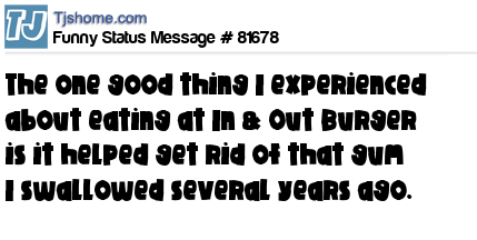 X  The one good thing I experienced about eating at In & Out Burger is it helped get rid of that gum I swallowed several years ago.
