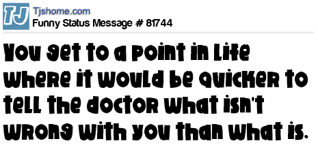X You get to a point in life where it would be quicker to tell the doctor what isn't wrong with you than what is.