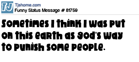 X says Sometimes I think I was put on this earth as god's way to punish some people.
