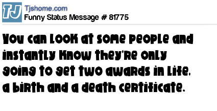 - # 71498 You can look at some people and instantly know they're only going to get two awards in life, a birth and a death certificate.